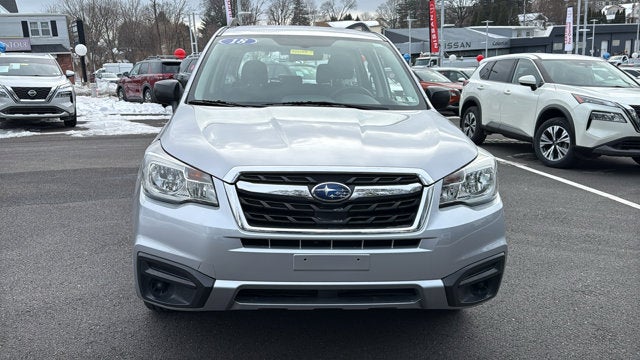 Check out all these great options Alloy Wheel Package (Black Finish Roof Rails and Wheels: 17" x 7.0J Black Machine Finish Alloy), 3.70 Axle Ratio, 4 Speakers, 4-Wheel Disc Brakes, ABS brakes, Air Conditioning, All-Weather Floor Mats, AM/FM radio, Brake assist, Bumpers: body-color, Cargo Cover - Manual Rear Gate, Cargo Tray, CD player, Cloth Upholstery, Driver door bin, Driver vanity mirror, Dual front impact airbags, Dual front side impact airbags, Electronic Stability Control, Emergency communication system: STARLINK, Exterior Parking Camera Rear, Four wheel independent suspension, Front anti-roll bar, Front Bucket Seats, Front Center Armrest, Front reading lights, Illuminated entry, Knee airbag, Low tire pressure warning, Occupant sensing airbag, Outside temperature display, Overhead airbag, Overhead console, Panic alarm, Passenger door bin, Passenger vanity mirror, Power door mirrors, Power steering, Power windows, Radio data system, Radio: Subaru Starlink 6.2" Multimedia System, Rear anti-roll bar, Rear window defroster, Rear window wiper, Remote keyless entry, Security system, Speed control, Split folding rear seat, Steering wheel mounted audio controls, Tachometer, Telescoping steering wheel, Tilt steering wheel, Traction control, Trip computer, Variably intermittent wipers, and Wheels: 17" x 7.0J Steel w/Center Cap. Recent Arrival! Ice Silver Metallic 2018 Subaru Forester 2.5i AWD Lineartronic CVT 2.5L 4-Cylinder DOHC 16V VVT