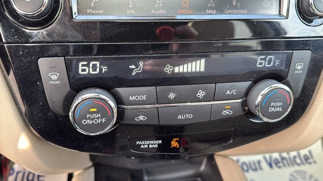 Check out all these great options 19" Aluminum Alloy Wheels, 4-Wheel Disc Brakes, 6.386 Axle Ratio, 9 Speakers, ABS brakes, Air Conditioning, Alloy wheels, AM/FM radio: SiriusXM, Anti-whiplash front head restraints, Auto High-beam Headlights, Auto-dimming Rear-View mirror, Automatic temperature control, Blind Spot Warning, Bose Audio, Brake assist, Bumpers: body-color, CD player, Delay-off headlights, Driver door bin, Driver vanity mirror, Dual front impact airbags, Dual front side impact airbags, Electronic Stability Control, Emergency communication system: NissanConnect Services, Exterior Parking Camera Rear, Four wheel independent suspension, Front anti-roll bar, Front Bucket Seats, Front Center Armrest w/Storage, Front dual zone A/C, Front fog lights, Front reading lights, Fully automatic headlights, Garage door transmitter: HomeLink, Heated door mirrors, Heated Front Bucket Seats, Heated front seats, Heated steering wheel, Illuminated entry, Lane Departure Warning System, Leather Shift Knob, Leather-Appointed Seat Trim, Low tire pressure warning, Memory seat, Navigation System, NissanConnect featuring Apple CarPlay and Android Auto, Occupant sensing airbag, Outside temperature display, Overhead airbag, Overhead console, Panic alarm, Passenger door bin, Passenger vanity mirror, Power door mirrors, Power driver seat, Power Liftgate, Power passenger seat, Power steering, Power windows, Radio data system, Radio: AM/FM/CD/AUX NissanConnect w/Navigation, Rear anti-roll bar, Rear Parking Sensors, Rear seat center armrest, Rear window defroster, Rear window wiper, Remote keyless entry, Roof rack: rails only, Security system, Special Paint - Pearl White Tricoat, Speed control, Speed-sensing steering, Split folding rear seat, Spoiler, Steering wheel mounted audio controls, Tachometer, Telescoping steering wheel, Tilt steering wheel, Traction control, Trip computer, Turn signal indicator mirrors, and Variably intermittent wipers. Pearl White Tricoat 2020 Nissan Rogue SL AWD CVT with Xtronic 2.5L I4 DOHC 16V