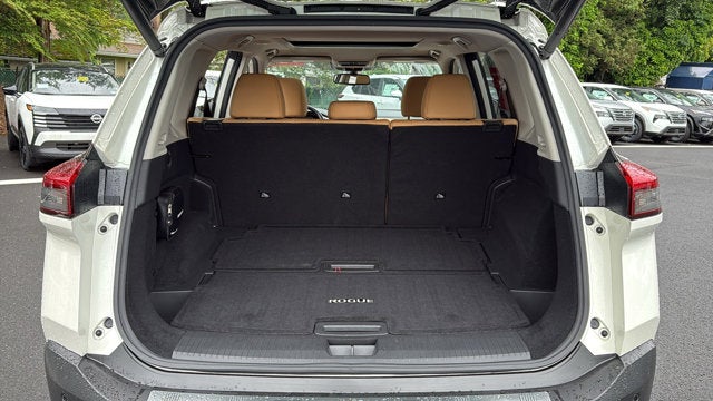 Check out all these great options 10 Speakers, 19" Aluminum Alloy Wheels, 4-Wheel Disc Brakes, 5.604 Axle Ratio, ABS brakes, Air Conditioning, Alloy wheels, AM/FM radio, Auto High-beam Headlights, Auto-dimming Rear-View mirror, Automatic temperature control, Black Splash Guards (Set of 4), Bose Premium Audio System, Brake assist, Bumpers: body-color, Chrome Rear Bumper Protector, Delay-off headlights, Driver door bin, Driver vanity mirror, Dual front impact airbags, Dual front side impact airbags, Electronic Stability Control, Emergency communication system: NissanConnect Services, Exterior Parking Camera Rear, First Aid Kit, Floor Mats w/2-Piece Cargo Area Protector, Four wheel independent suspension, Front anti-roll bar, Front Bucket Seats, Front Center Armrest, Front dual zone A/C, Front fog lights, Front reading lights, Fully automatic headlights, Heads-Up Display, Heated door mirrors, Heated Front Bucket Seats, Heated front seats, Heated rear seats, Heated steering wheel, Illuminated entry, Illuminated Kick Plates, Knee airbag, Leather steering wheel, Low tire pressure warning, Memory seat, Navigation system: NissanConnect Navigation, NissanConnect featuring Apple CarPlay and Android Auto, Occupant sensing airbag, Outside temperature display, Overhead airbag, Overhead console, Panic alarm, Passenger door bin, Passenger vanity mirror, Power door mirrors, Power driver seat, Power Liftgate, Power moonroof, Power passenger seat, Power steering, Power windows, Quilted Semi-Aniline Leather Seat Trim, Radio data system, Radio: AM/FM NissanConnect w/Navigation, Rear air conditioning, Rear anti-roll bar, Rear seat center armrest, Rear side impact airbag, Rear window defroster, Rear window wiper, Remote keyless entry, Roof rack: rails only, Security system, Special Paint - Scarlet Ember Tintcoat, Speed control, Speed-Sensitive Wipers, Split folding rear seat, Spoiler, Steering wheel mounted audio controls, Tachometer, Telescoping steering wheel, Tilt steering wheel, Traction control, Trip computer, Turn signal indicator mirrors, and Variably intermittent wipers. CARFAX One-Owner. Pearl White Tricoat 2021 Nissan Rogue Platinum AWD CVT with Xtronic 2.5L I4 DOHC 16V