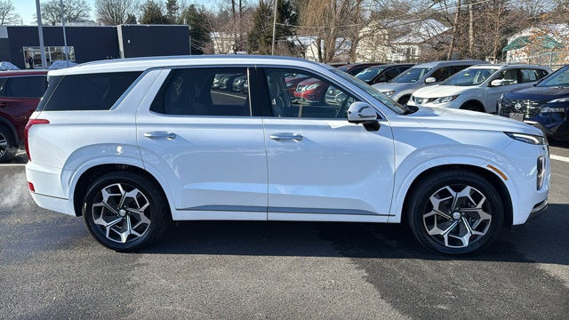 Check out all these great options Option Group 01, 12 Speakers, 3.648 Axle Ratio, 3rd row seats: split-bench, 4-Wheel Disc Brakes, ABS brakes, Air Conditioning, Alloy wheels, AM/FM radio: SiriusXM, Apple CarPlay & Android Auto, Auto High-beam Headlights, Auto-dimming Rear-View mirror, Auto-leveling suspension, Automatic temperature control, Brake assist, Bumpers: body-color, Carpeted Floor Mats, Compass, Delay-off headlights, Driver door bin, Driver vanity mirror, Dual front impact airbags, Dual front side impact airbags, Electronic Stability Control, Emergency communication system: Blue Link Connected Car Service (3-year complimentary subscription), Four wheel independent suspension, Front anti-roll bar, Front Bucket Seats, Front Center Armrest, Front dual zone A/C, Front reading lights, Fully automatic headlights, Garage door transmitter: HomeLink, harman/kardon® Speakers, Heads-Up Display, Heated & Ventilated Front Bucket Seats, Heated door mirrors, Heated front seats, Heated rear seats, Heated steering wheel, Illuminated entry, Knee airbag, Low tire pressure warning, Memory seat, Navigation System, Occupant sensing airbag, Outside temperature display, Overhead airbag, Overhead console, Panic alarm, Passenger door bin, Passenger vanity mirror, Power door mirrors, Power driver seat, Power Liftgate, Power moonroof, Power passenger seat, Power steering, Power windows, Premium Nappa Leather Seat Trim, Radio data system, Radio: AM/FM/MP3 Premium Audio System, Rain sensing wipers, Rear air conditioning, Rear anti-roll bar, Rear audio controls, Rear reading lights, Rear window defroster, Rear window wiper, Reclining 3rd row seat, Remote keyless entry, Security system, Speed control, Speed-sensing steering, Split folding rear seat, Spoiler, Steering wheel mounted audio controls, Tachometer, Telescoping steering wheel, Tilt steering wheel, Traction control, Trip computer, Turn signal indicator mirrors, Variably intermittent wipers, Ventilated front seats, Ventilated rear seats, and Wheels: 20" x 7.5J Calligraphy Exclusive Alloy. CARFAX One-Owner. Recent Arrival! Hyper White 2022 Hyundai Palisade Calligraphy AWD 8-Speed Automatic with SHIFTRONIC V6