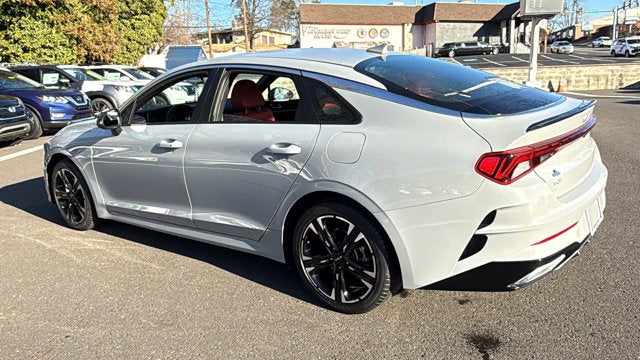 Check out all these great options GT-Line Premium Package (Forward Collision Avoidance-Assist, Highway Driving Assist, LED Projection Headlamps, and Smart Cruise Control w/Stop & Go), GT-Line Red Interior Package, 4-Wheel Disc Brakes, 6 Speakers, ABS brakes, Air Conditioning, Alloy wheels, AM/FM radio: SiriusXM, Apple CarPlay & Android Auto, Auto High-beam Headlights, Automatic temperature control, Brake assist, Bumpers: body-color, Cargo Net, Cargo Tray, Carpeted Floor Mats, Cloth/SynTex Seat Trim, Delay-off headlights, Driver door bin, Driver vanity mirror, Dual front impact airbags, Dual front side impact airbags, Electronic Stability Control, Four wheel independent suspension, Front anti-roll bar, Front Bucket Seats, Front Center Armrest, Front dual zone A/C, Front fog lights, Front reading lights, Fully automatic headlights, Heated door mirrors, Illuminated entry, Knee airbag, Low tire pressure warning, Navigation System, Occupant sensing airbag, Outside temperature display, Overhead airbag, Overhead console, Panic alarm, Passenger door bin, Passenger vanity mirror, Power door mirrors, Power driver seat, Power steering, Power windows, Radio data system, Radio: AM/FM/MP3 Audio System, Rear anti-roll bar, Rear Bumper Applique, Rear seat center armrest, Rear side impact airbag, Rear window defroster, Remote keyless entry, Security system, Speed control, Speed-sensing steering, Split folding rear seat, Spoiler, Sport steering wheel, Steering wheel mounted audio controls, Tachometer, Telescoping steering wheel, Tilt steering wheel, Traction control, Trip computer, Trunk Cargo Management System, Turn signal indicator mirrors, Variably intermittent wipers, Wheel Locks, and Wheels: 18" Gloss Black Machined Finish Alloy. CARFAX One-Owner. Wolf Gray 2023 Kia K5 GT-Line FWD 8-Speed Automatic 1.6L I4 DGI Turbocharged DOHC 16V LEV3-ULEV70 180hp