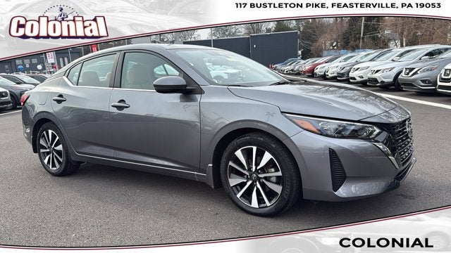 Check out all these great options All-Weather Package (Dual Zone Auto Climate Control, Heated Exterior Mirrors, Heated Front Seats, Leather-Wrapped Heated Steering Wheel, and Remote Engine Start), SV Premium Package (17" Alloy Wheels, 6-Way Power Driver's Seat, Bose Premium Audio System w/8 Speakers, Intelligent Around View Monitor (I-AVM), Leather Shift Knob, Power Sliding Glass Moonroof w/Tilt Feature, Quilted Leather Seat Trim, Rear Center Armrest w/2 Cupholders, and Turn Signal Indicators On Exterior Mirrors), 16" Alloy Wheels, 4-Wheel Disc Brakes, 6 Speakers, ABS brakes, Air Conditioning, Alloy wheels, AM/FM radio: SiriusXM, Auto High-beam Headlights, Blind Spot Warning, Body Colored Splash Guards (4-Piece), Brake assist, Bumpers: body-color, Carpeted Floor Mats w/Trunk Mat, Clear Rear Bumper Protector, Delay-off headlights, Door Sill Plates, Driver door bin, Driver vanity mirror, Dual front impact airbags, Dual front side impact airbags, Electronic Stability Control, Four wheel independent suspension, Front anti-roll bar, Front Bucket Seats, Front Center Armrest, Front reading lights, Fully automatic headlights, Illuminated entry, Knee airbag, Leather steering wheel, Low tire pressure warning, NissanConnect featuring Apple CarPlay and Android Auto, Occupant sensing airbag, Outside temperature display, Overhead airbag, Overhead console, Panic alarm, Passenger door bin, Passenger vanity mirror, Power door mirrors, Power steering, Power windows, Radio data system, Radio: AM/FM w/RDS/MP3/Aux-In, Rear anti-roll bar, Rear Parking Sensors, Rear side impact airbag, Rear window defroster, Remote keyless entry, Security system, Speed control, Speed-sensing steering, Split folding rear seat, Steering wheel mounted audio controls, Tachometer, Technical Spec Change 1 (DISC), Telescoping steering wheel, Tilt steering wheel, Traction control, Trip computer, Upgraded Cloth Seat Trim, and Variably intermittent wipers. CARFAX One-Owner. Gun Metallic 2024 Nissan Sentra SV FWD CVT with Xtronic 2.0L I4 DOHC