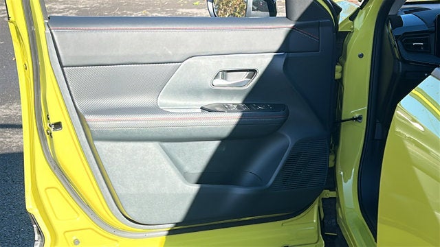 Check out all these great options 17" Alloy Wheels, 19" Alloy Wheels, 2-Tone Premium Paint, 4-Wheel Disc Brakes, 6 Speakers, ABS brakes, Air Conditioning, Alloy wheels, AM/FM radio: Sirius, Auto High-beam Headlights, Automatic temperature control, Brake assist, Bumpers: body-color, Carpeted Floor Mats, Delay-off headlights, Driver door bin, Driver vanity mirror, Dual front impact airbags, Dual front side impact airbags, Electronic Stability Control, Four wheel independent suspension, Front anti-roll bar, Front Bucket Seats, Front Center Armrest, Front reading lights, Fully automatic headlights, Heated door mirrors, Illuminated entry, Knee airbag, Leather Shift Knob, Leather steering wheel, Low tire pressure warning, Occupant sensing airbag, Outside temperature display, Overhead airbag, Overhead console, Panic alarm, Passenger door bin, Passenger vanity mirror, Power door mirrors, Power steering, Power windows, Radio data system, Radio: AM/FM Audio System, Rear anti-roll bar, Rear reading lights, Rear seat center armrest, Rear side impact airbag, Rear window defroster, Rear window wiper, Remote keyless entry, Security system, Speed control, Speed-sensing steering, Splash Guards, Split folding rear seat, Spoiler, Sport Cloth/Leatherette Seat Trim, Sport steering wheel, Steering wheel mounted audio controls, Tachometer, Telescoping steering wheel, Tilt steering wheel, Traction control, Trip computer, Turn signal indicator mirrors, Variably intermittent wipers, and Wireless Apple CarPlay/Wireless Android Auto. CARFAX One-Owner. Yuzu Yellow Metallic/Super Black 2025 Nissan Kicks SR AWD CVT with Xtronic 2.0L DOHC